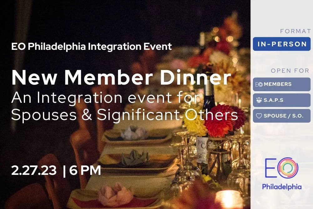 Attendees: EO Philadelphia New (&Newish) Members and their spouses, Invited tenured EO members, and our Strategic Partners. Please note this is an invitation-only event.